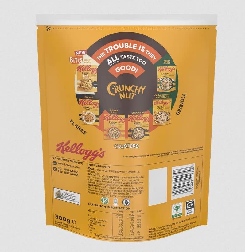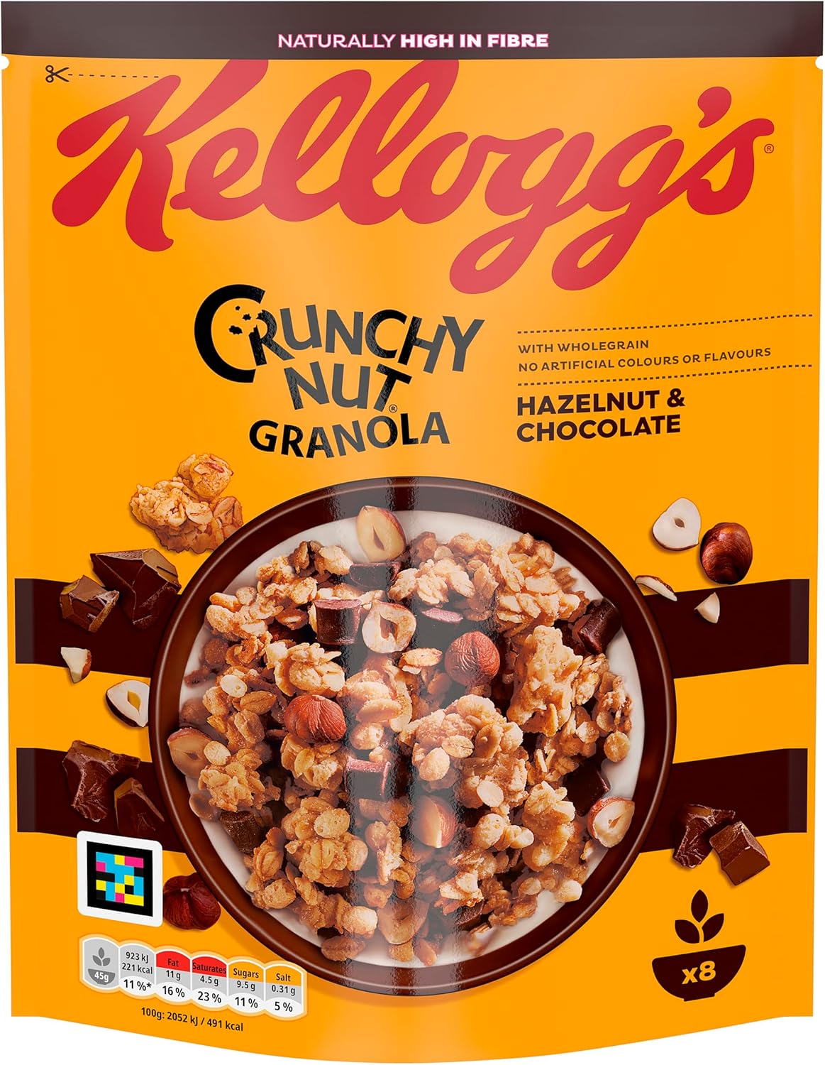 - Crunchy cereal clusters with chocolate and hazelnuts