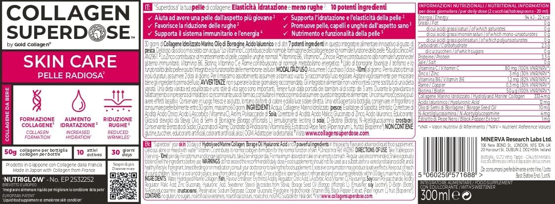 - COLLAGEN NUTRITIONAL SUPPLEMENT WITH ANTI-AGING EFFECT: Superdose Skin Care is specifically designed to fight the signs of aging, reducing wrinkles for a youthful-looking skin. For a long-lasting effect, it is recommended to take 1-2 tablespoons daily on an empty stomach for at least 30 days